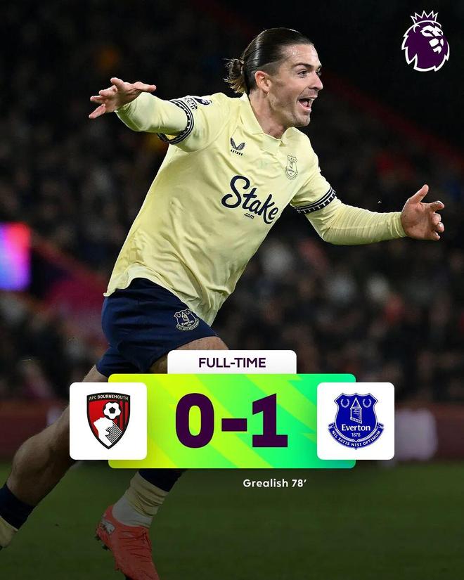 英超第14轮,伯恩茅斯主场迎战埃弗顿。下半场比赛,格拉利什射门,皮球在击中后卫折射入网。最终,埃弗顿在客场1-0击败伯恩茅斯。