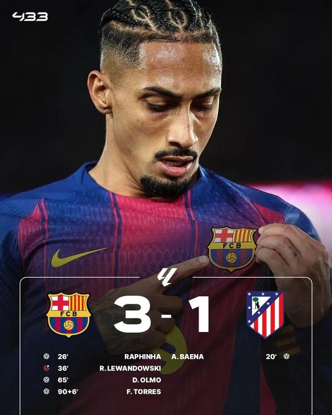 2025年12月03日 巴萨3-1逆转马竞先赛4分领跑 拉菲尼亚建功奥尔莫破门+造点+伤退