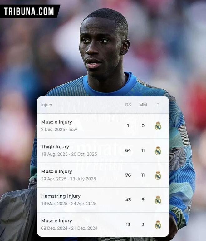 费兰-门迪在今年8月遭遇大腿伤情,10月底刚刚伤愈,本赛季仅代表皇马出战了一场比赛,是11月27日对阵奥林匹亚科斯首发打满全场。